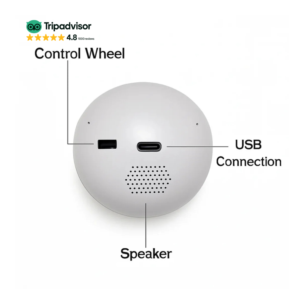Lightweight and rechargeable, MemoSphere travels wherever you go. Whether at home, on a trip, or visiting friends, it transforms any moment into a personal cinematic experience.